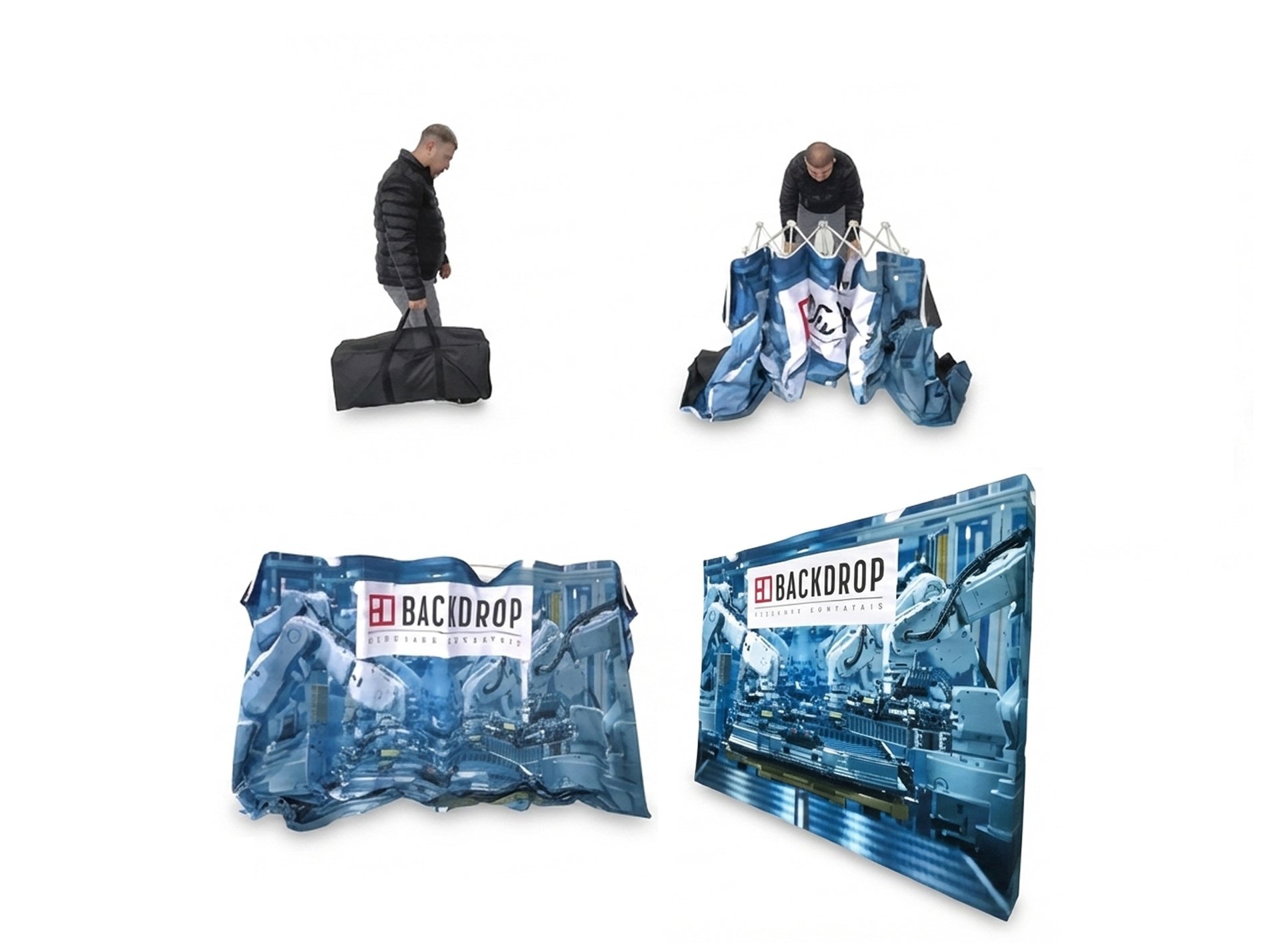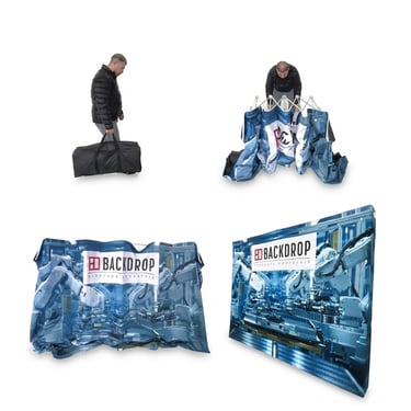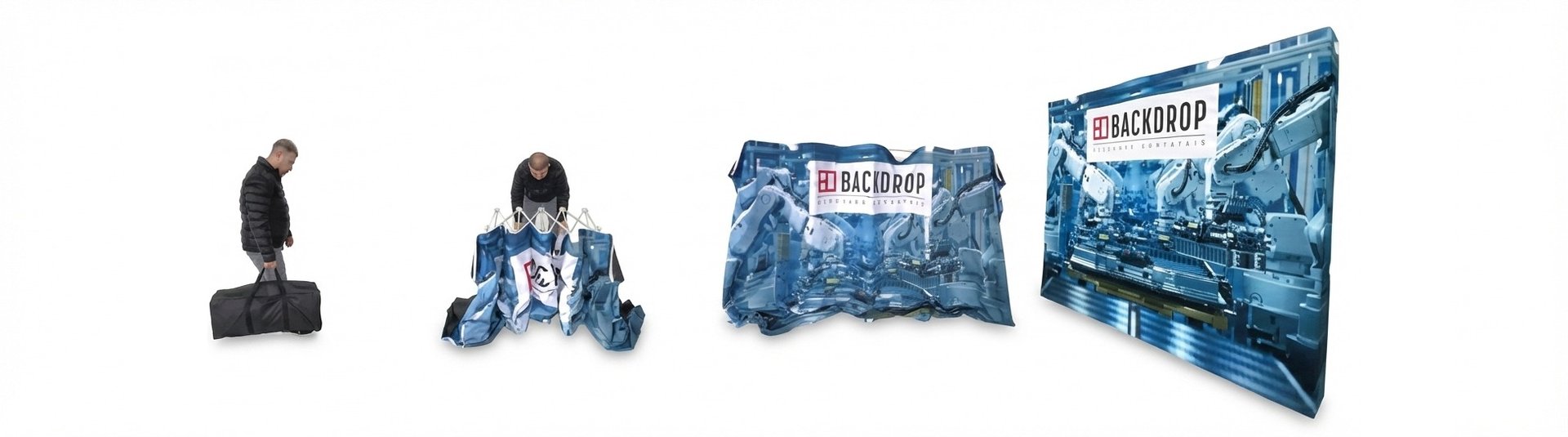 Soluções portáteis em comunicação visual para eventos, desenvolvidas para destacar sua marca com praticidade, montagem rápida e alto impacto visual