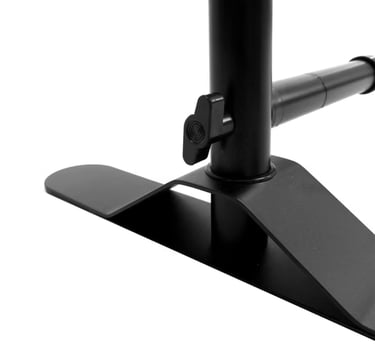 O ajuste de altura e largura torna o equipamento extremamente versátil, permitindo uso em ambientes reduzidos ou grandes áreas de exposição, sempre mantendo proporção visual equilibrada.