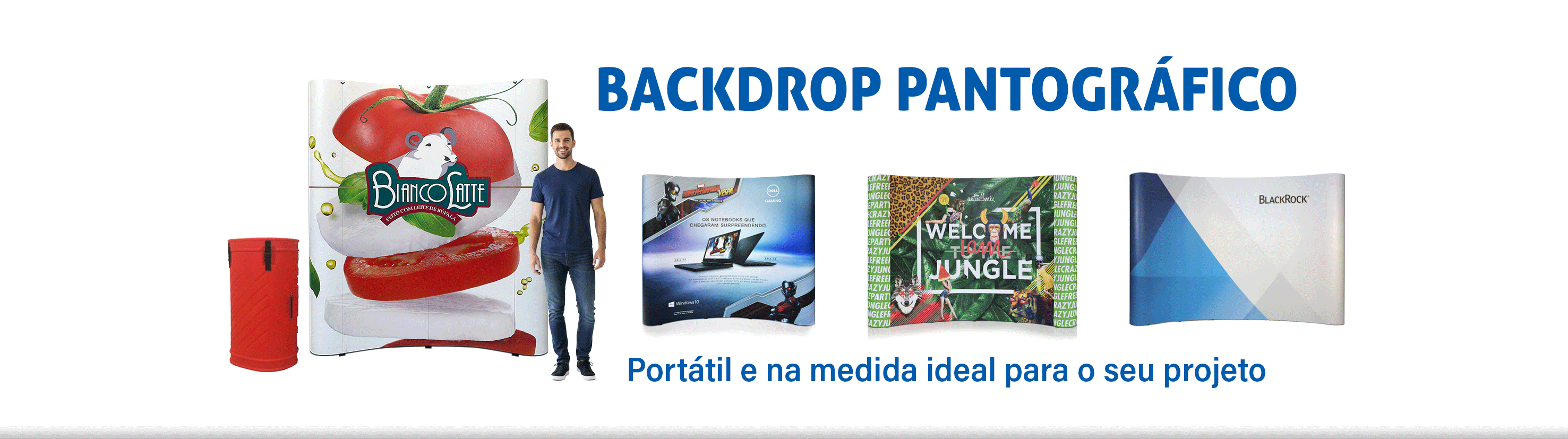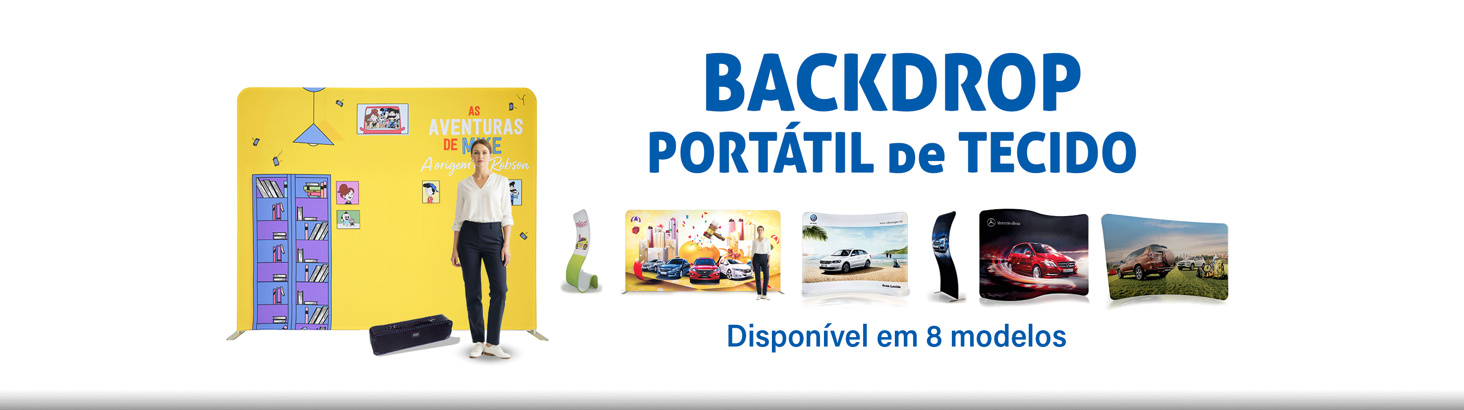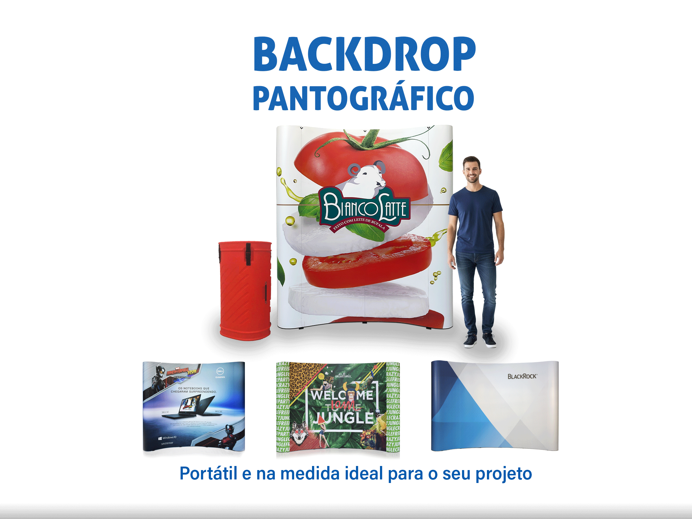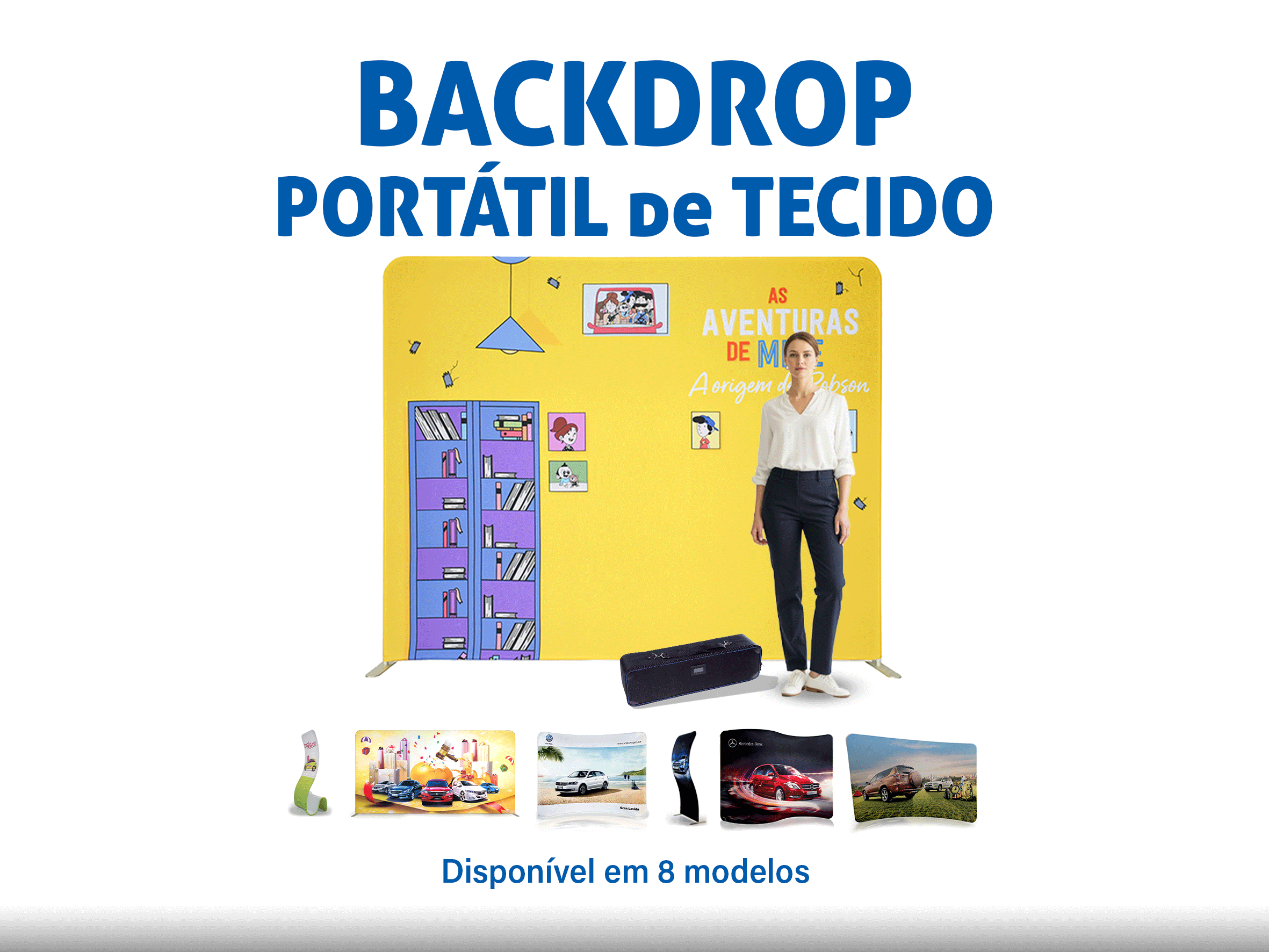 Nossa linha de produtos inclui backdrops de tecido tensionado, backdrops pantográficos (pop up), banners roll-up, balcões promocionais retráteis e estruturas sob medida para diferentes necessidades. Todos os itens são projetados com foco em design funcional, montagem rápida e transporte facilitado, sem abrir mão da resistência e da leveza. Isso garante que sua equipe possa montar e desmontar os displays com facilidade, sem necessidade de ferramentas, otimizando o tempo e reduzindo custos operacionais.
